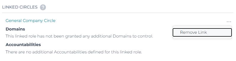 The role linked elsewhere and their supercircle may choose to remove the Linked Role. From the role's Overview tab or the parent circle's Roles tab, there will be a section containing the Linked Roles/Circles. Click the menu icon next to this entry, and select "Remove Link," and then click "OK" in the dialogue box to remove the link.